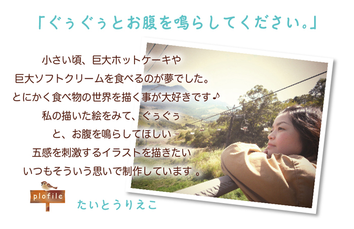 ![]() 「たいとう りえこ」 帯刀 理恵子 Rieko Taitou 富山県射水市に生まれる 石川県金城大学短期大学部美術学科卒業 2003 illstllation&desgin marble 設立 ポスター、チラシ、POP制作、ホームページデザイン ウェルカムボード、キャラクターデザイン、挿絵など数多く手がける 2004 富山県黒部市吉田科学館のオリジナルプラネタリウム制作を手がけはじめる 2007 TOPIC【富山プロフェッショナルイラストレーターズクラブ】入会 2010 初の個展『ぐぅぐぅ展』を開催 2012 アトリエぐぅぐぅオープン 2019 絵本『ひょっこりじーっ』を自費出版 製本すべて手掛ける 2022 現在イラストレーター、デザイナーとして幅広く活動中 主な制作作品【プラネタリウム】【映像作品】2004 冬 新川もののけ話 2005 冬 黒部奥山の昔話 2006 夏 黒部のあんま/冬大地を拓く〜椎名道三と十二貫野用水〜 2007 夏 センナじいとくま/冬 雪ものがたり〜雪降る里の民話と科学〜 2008 夏 モジャコの旅〜富山湾の不思議な水〜/冬 ブリすけの冒険〜ぼくらの富山湾を守れ〜 2009 夏 木星からのメッセージ2109/冬 新川もののけ話(再投影) 2010 夏 月夜のふしぎな物語〜カノンと水辺の仲間たち〜/冬 黒部奥山の昔話(再投影) 2011 夏 37億5千万年の旅〜ジルコンじいさんが語る地球の歴史〜/冬 そらみの星空ウォッチング 2012 夏 愛本の刎橋〜黒部に架ける奇矯〜/冬 大地を拓く〜椎名道三と十二貫野用水〜 2013 夏 彗星の旅/冬 雪ものがたり〜雪降る里の民話と科学〜 2014 夏 ふるさとにて〜田中冬二の愛した黒部 2015 夏 ジルコンじいさんを探せ!〜黒部の山・川・海で大冒険〜/秋 モジャコの旅〜富山湾の不思議な水〜 2016 夏 ハレー彗星が来る年に/冬 ブリ助の冒険〜ぼくらの富山湾を探せ(2008年リメイク版) 2017 夏 黒部の猫又/冬 37億5千万年の旅〜ジルコンじいさんが語る地球の歴史〜(2011年リメイク版) 2018 夏 雷鳥ジオと夜空の赤い目〜火星の大接近をさぐれ〜/冬 雷鳥ギルツ(再投影) 2019 夏 ムーンツアーズ/冬 モジャコの旅〜富山湾の不思議な水〜(2008年リメイク版) 2020 夏 ウォー太郎と水巡りの旅/冬 月夜のふしぎな物語〜カノンと水辺の仲間たち〜(2010年リメイク版) 2021 夏 ねこのエマ脱走中〜準天頂衛星みちびきに見つかるニャ!?〜 2021 冬 モジャコの旅〜富山湾の不思議な水〜(2008年リメイク版) 2022 春 ウォー太郎と水巡りの旅〜わき水はどこからくる?の巻〜 主な作品展・原画展2004 プラネタリウム「新川もののけ話」原画展 2005 プラネタリウム「黒部奥山の昔話し」原画展 2006 プラネタリウム「黒部のあんま」原画展 2008 9月TOPICグループ展 2008 11月TOPICグループ展 2008 12月自作プラネタリウム番組原画展 2009 4月 TOPICグループ展『 ポストカード&原画展 華・花・HANA 』 2009 7月 TOPICグループ展『 いらすと文月展 』 2010 プラネタリウム「月夜のふしぎな物語」原画展 2010 9月 TOPICグループ展『 おわら展in八尾 』 2010 10月 TOPICグループ展『 坂の町アートin八尾 』 2010 11月 個展たいとうりえこの世界『ぐぅぐぅ展』 2011 4月 個展たいとうりえこの世界『春のぐぅぐぅ展』 2011 プラネタリウム「37億5千万年の旅」原画展 2012 6月〜9月 プラネタリウム「愛本の刎橋」原画展 2010 11月 個展たいとうりえこの世界『ぐぅぐぅ展』 2013 4月 今井りえ、たいとうりえこ2人展『春のきままなぐぅぐぅ展』 2010 7月〜9月 プラネタリウム「彗星の旅」原画展 2016 2月 個展たいとうりえこの世界『ぐぅぐう展』 2019 2月〜4月 個展たいとうりえこの世界『ぐぅぐう展』 所属 ◆プラネタリウム制作「スタジオこんぺいとう」ディレクター ◆黒部天文同好会 天文講師 ◆今井りえのパステルアート「KimamaHouse」ディレクター ◆TOPIC【富山プロフェッショナルイラストレーターズクラブ】会員 ◆富山似顔絵師会「Faces」事務局長 ◆劇団ばら 団員 |